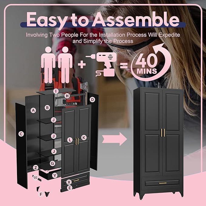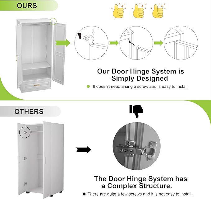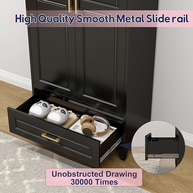 - Secure Anti-Tip Design: Built-in wall mounting holes secure the tall cabinet to prevent tipping and ensure safety around children or pets. Adjustable legs compensate for uneven floors and prevent wobbling. Reliable pantry storage cabinet for kitchens, garages, or home offices