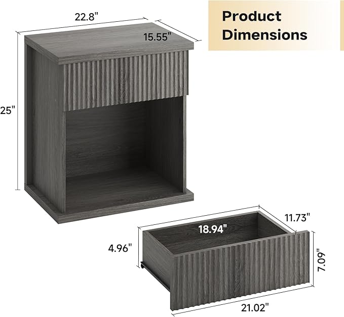 - Perfect Size: the 22.83"L x 15.55"W x 25"H dimensions of wood bedside table fit nightstand, living room side table and Office Storage. L-shaped anti-tip brackets for added stability and family safety.