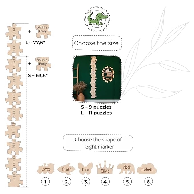 - Two Size Options to Fit Your Space:Small (S): 63.8" height, 9.8" width, with 9 puzzle pieces;Large (L): 77.6" height, 9.8" width, with 11 puzzle pieces.Perfect for nurseries, playrooms, or family spaces.