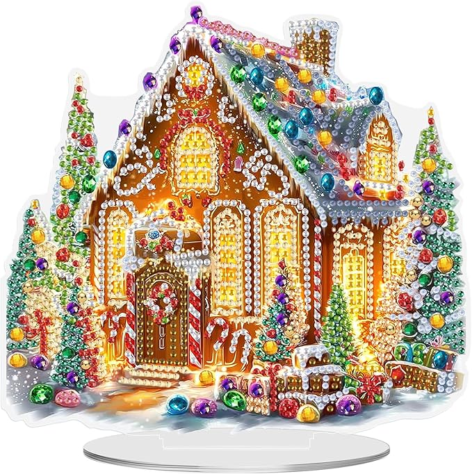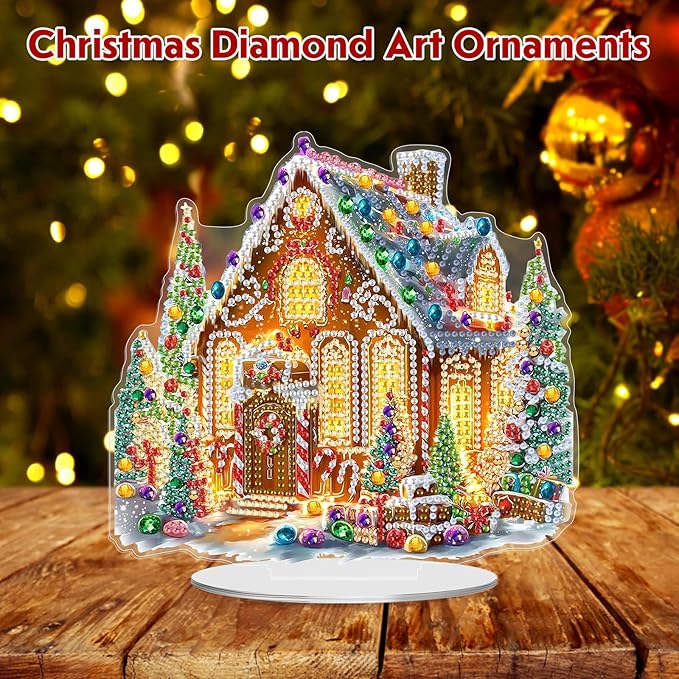 MEIYUDA Christmas Diamond Art Tabletop Kits, Christmas House Diamond Art Painting Desktop Ornaments for Adult, DIY Special Shaped Crystal Desk Placement Ornament for Home Office Decor Crafts Gift