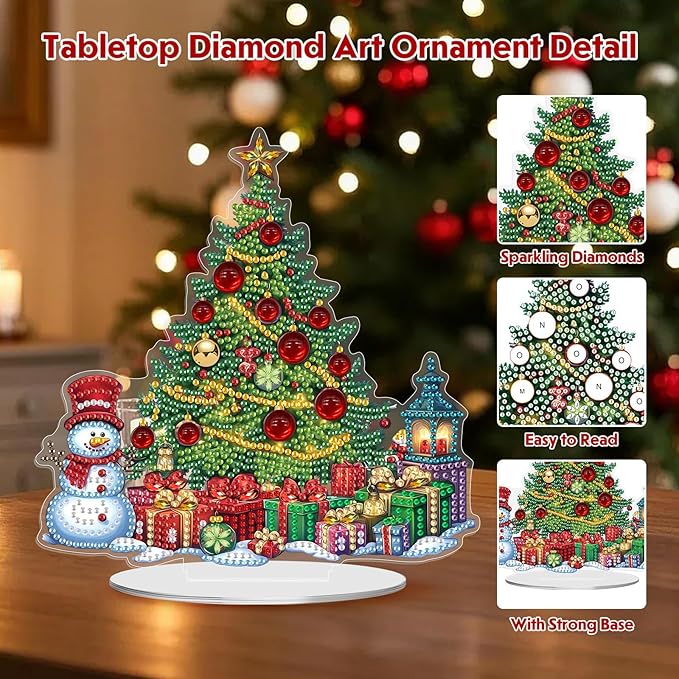 MEIYUDA Christmas Diamond Art Tabletop Kits, DIY Christmas Tree Special Shaped Crystal Desktop Diamonds Painting Ornaments for Adults, Diamond Art Desk Placement Ornaments for Home Decor