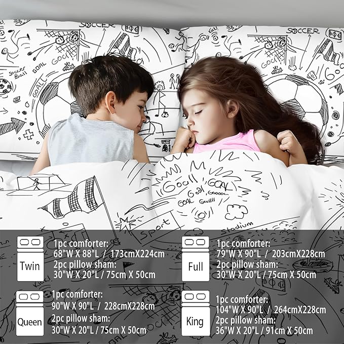 - Twin Size Soccer Comforter Set :This bedding set includes 1 comforter(67" x 85") and 2 pillowcases(20”x30”). In order to facilitate transportation, the quilt is made of vacuum compression technology. It will be slightly wrinkled when taken apart, but it will quickly regain its fluffiness if you gently beat it.