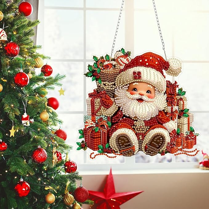 MEIYUDA Christmas Diamond Art Hanging Kits for Adult, Santa Claus Diamond Painting Hanging Kits Ornaments, DIY Special Shaped Rhinestone Window Pendants kit for Home Garden Wall Decor Gift