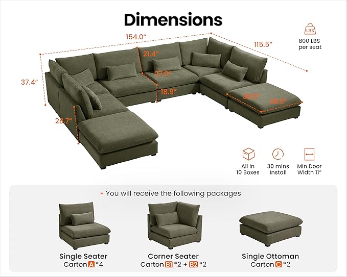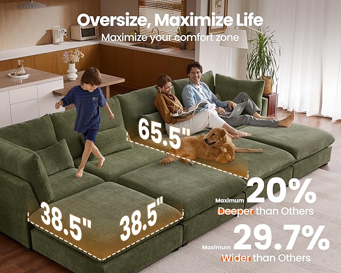 - 【Tool-Free Assembly in Minutes】Assemble your sofa in no time—no tools required! The modular design allows for quick and easy setup using high-quality U-shaped stainless steel connectors, ensuring a secure fit between each module. Reconfigure your sectional effortlessly and enjoy it in as little as 20 minutes. Perfect for those who value convenience and flexibility, this sectional offers a seamless assembly experience and provides total comfort from the moment it arrives