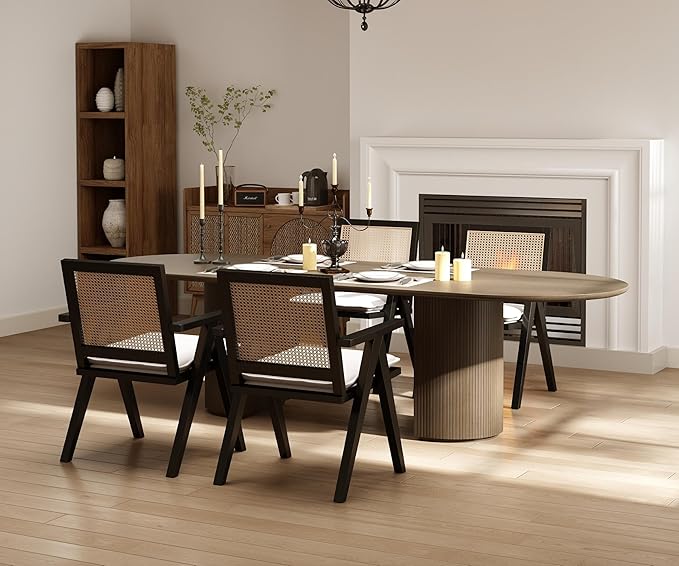 - Floating Back Design: The open-weave rattan back and minimalist frame make this rattan accent chair ideal for boho, mid-century or Scandinavian spaces. Black wood legs contrast beautifully with natural fibers, elevating kitchen tables or home office