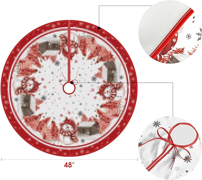AVOIN colorlife Snowflake Snowman Cardinal Christmas Tree Skirt 48 Inch, Winter Holiday Tree Mat Decoration Red
