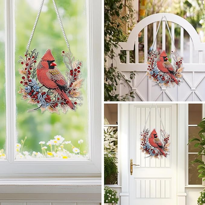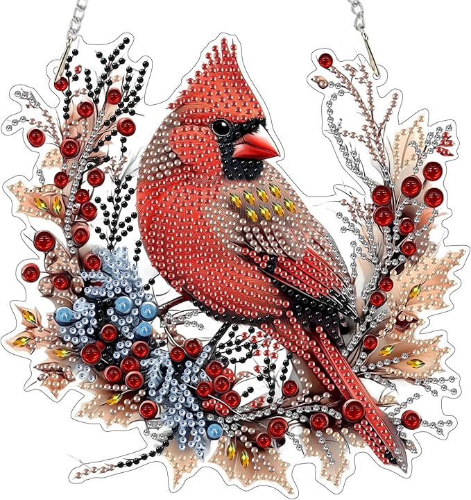 EOBROMD Diamond Hanging Art Kits for Adults Cardinal Birds, Suncatcher Diamond Art Painting, DIY Special Shaped Rhinestone Kits for Adults, Window Pendants Home Garden Wall Hanging Ornament