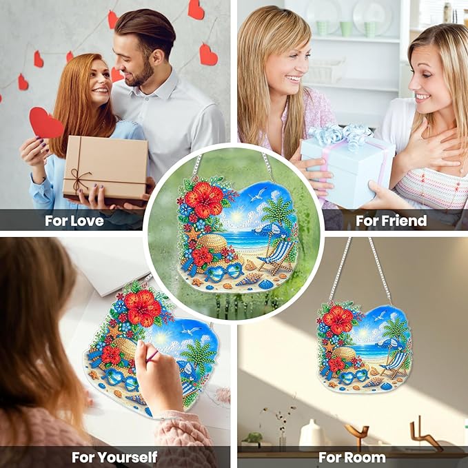 EOBROMD Diamond Hanging Art Kits for Adults, Beach Holiday DIY Special Shaped Rhinestone Kits for Adults, Diamond Art Painting Suncatcher, Window Pendants Home Garden Wall Hanging Ornament