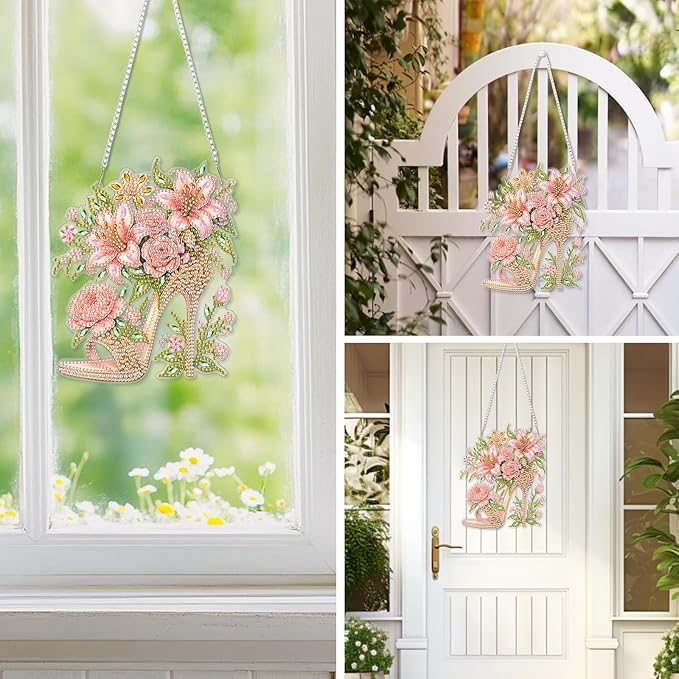 EOBROMD Diamond Hanging Art Kits for Adults, High Heel Diamond Art Painting Suncatcher, DIY Special Shaped Rhinestone Kits for Adults, Window Pendants Home Garden Wall Hanging Ornament