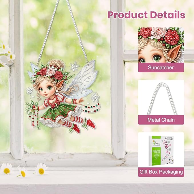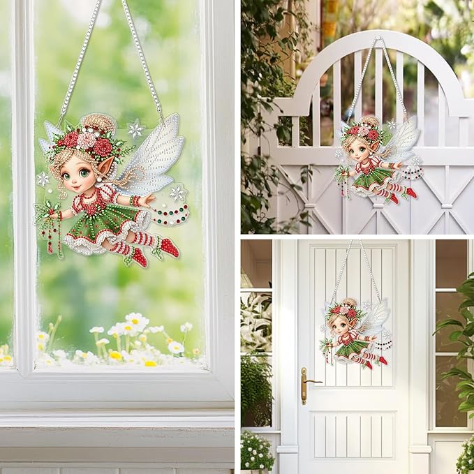 EOBROMD Diamond Hanging Art Kits for Adults, Diamond Art Painting Fairy Window Pendant Kits Suncatchers, DIY Special Shaped Rhinestone Adults, Home Wall Decor