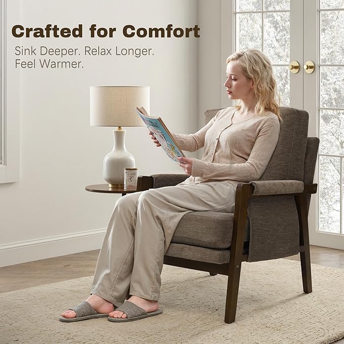 - Comfort Your Body - With breathable surface & well-padded soft seat and back, our accent chair is designed with both comfort and support in mind. The ergonomic design with comfortable armrests ensures that your body is properly supported, while the comfortable cushions and backrest provide a cozy spot to relax.