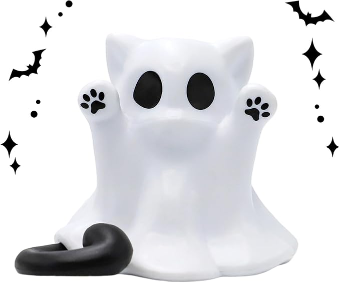 - This unique cat ghost figurine serves as an eye-catching desk ornament, making it an excellent addition to both home and office spaces during the Halloween season
