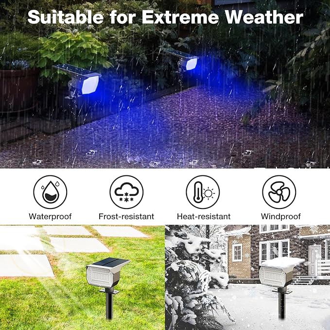 - Multiple Applications: Outdoor solar landscape spotlights will decorate your garden, yard, driveway, porch, patio, path, walkway, swimming pool, lawn, garden and more. Add life to your trees and plants and enjoy a satisfying nighttime light show. It's perfect for holidays, Halloween, Christmas