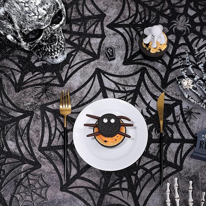 - SPIDER WEB DESIGN: Shaped in spider web of different styles, colored in glitter black, sophisticated and dazzling, to create whimsical and spooky Halloween vibes for your kitchen decor
