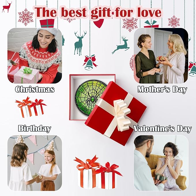 Stained Glass Window Hanging - Black Green Horror Spider Web Suncatcher for Doors Garden Patio Sun Catchers Decor Christmas Halloween Birthday Gifts for Women Men Mom Nana Friend 7.8 in