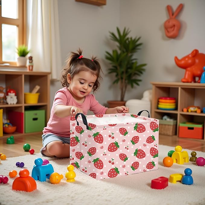 HIYAGON Rectangular Baby Girl Basket Kids Baby Storage Basket Toy Storage Bin Organizer Box Room Decor(Strawberry)