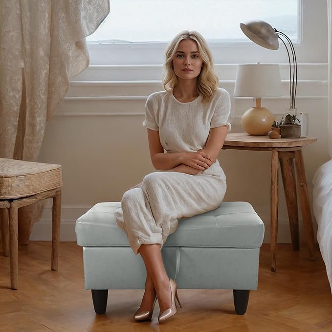 - OTTOMAN BENCH: This versatile storage ottoman doubles as a comfortable bench, perfect for entryways, living rooms, or bedrooms. Designed to blend style with functionality, it provides both extra seating and hidden storage, making it a practical and stylish solution for any space.