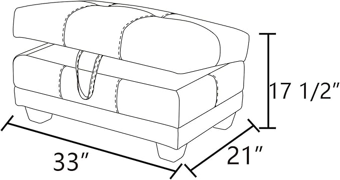 - DIMENSIONS: Measuring 33" L x 21" W x 17.5" H, this storage ottoman is perfectly sized to fit effortlessly into your space. With a weight capacity of up to 300 lbs, it offers both style and durability, serving as a sturdy seating option or reliable storage solution for your home.