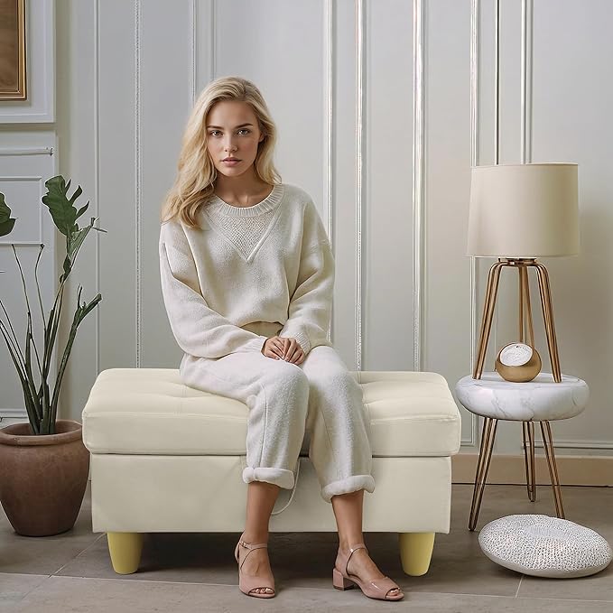 - OTTOMAN BENCH: This versatile storage ottoman doubles as a comfortable bench, perfect for entryways, living rooms, or bedrooms. Designed to blend style with functionality, it provides both extra seating and hidden storage, making it a practical and stylish solution for any space.