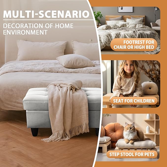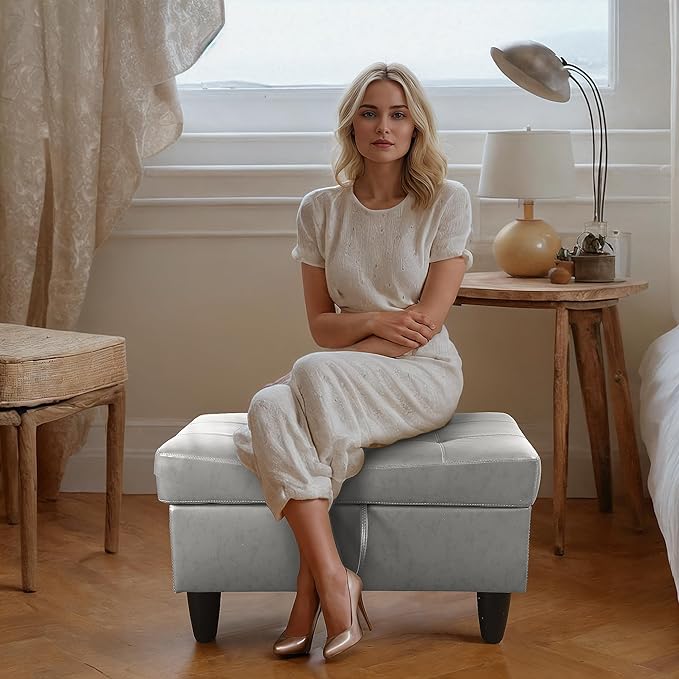 - OTTOMAN BENCH: This versatile storage ottoman doubles as a comfortable bench, perfect for entryways, living rooms, or bedrooms. Designed to blend style with functionality, it provides both extra seating and hidden storage, making it a practical and stylish solution for any space.