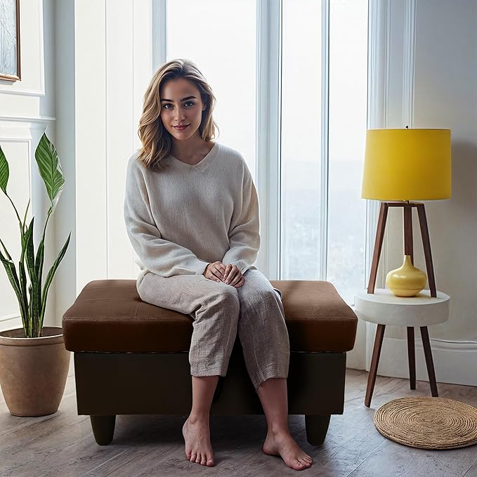 - BENCH OTTOMAN: This adaptable storage ottoman functions as a comfortable bench, perfect for entryways, living rooms, and bedrooms. Blending style with practicality, it offers both seating and storage in one stylish piece. Sit down and enjoy the ideal mix of comfort and convenience this bench ottoman provides.