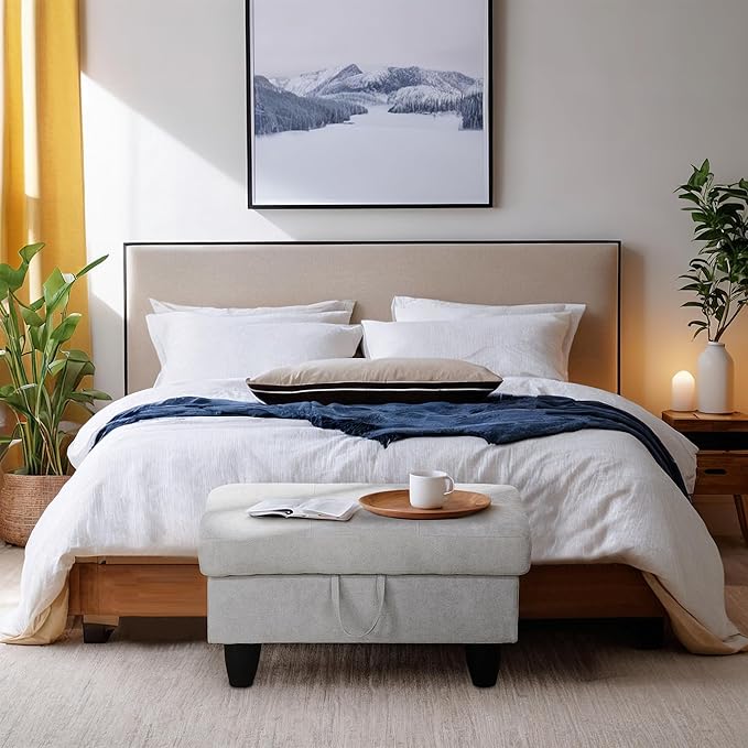 - BENCH OTTOMAN: This adaptable storage ottoman functions as a comfortable bench, perfect for entryways, living rooms, and bedrooms. Blending style with practicality, it offers both seating and storage in one stylish piece. Sit down and enjoy the ideal mix of comfort and convenience this bench ottoman provides.