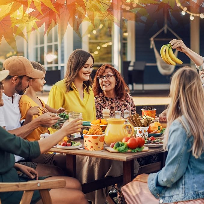 - Fall Theme: our autumn snack cups are designed with 4 pumpkin maple leaf patterns, each of which is carefully crafted with the essence of autumn, ensuring that your Thanksgiving or fall party is both fashionable and festive, and the bright orange and tangerine colors and decorative patterns represent the spirit of the fall festival, creating a warm and happy atmosphere for your party