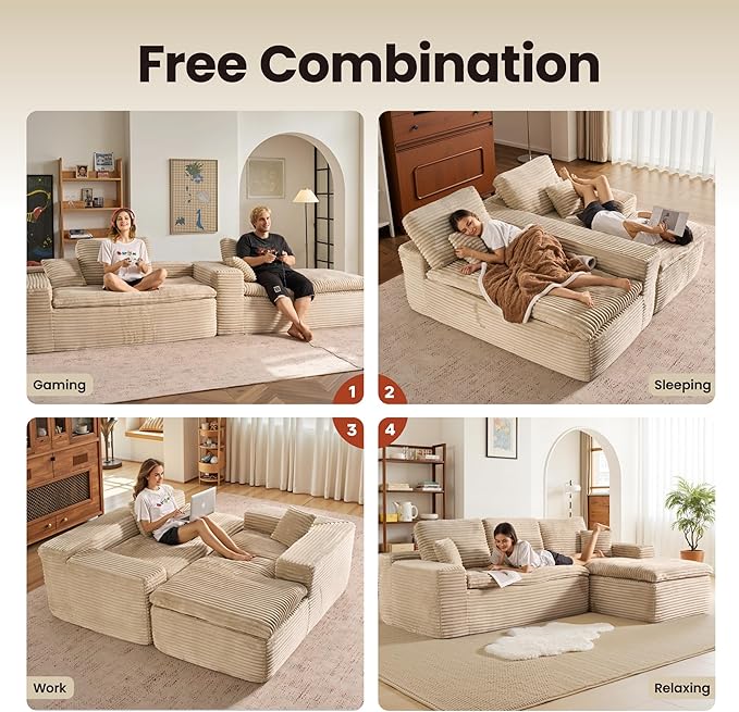 - No Assembly Required:Escape the typical furniture setup hassle with our modular cloud lounge. Simply unbox all parts and lightly tap each segment to boost its springiness and poof, bringing it back to its photogenic glory. Complete revival may take up to around 72 hours. Delight in the ease of a no-assembly nirvana!