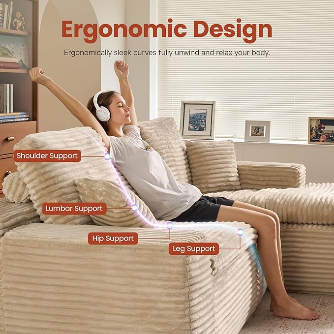 - Comfy Chaise Couch:Bask in unparalleled luxury with our interchangeable sofa collection, which embodies a spacious, cloud-like seating sensation. Revel in supreme ease with our couch with 70" lounge chaise, meticulously crafted from high resilience foam architecture and coil spring reinforcement