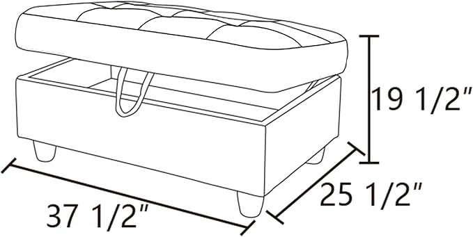 - SIZE & CAPACITY: Measuring 37.5" L x 25.5" W x 19.5" H, this storage ottoman is crafted to integrate smoothly into any room. With a weight capacity of up to 300 lbs, it provides both a stylish touch and a durable, dependable option for seating or storage in your home.