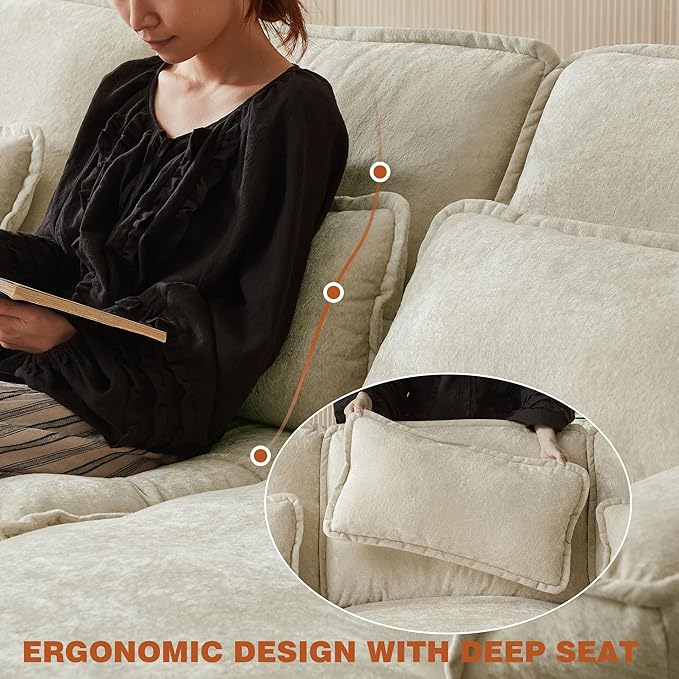 - Skin-Friendly Fabric: The chenille fabric is soft and skin-friendly, providing a soft and comfortable touch and adding a sophisticated and luxurious look to the comfy cloud couch. And each pillow of this cloud sofa is removable for easy cleaning.