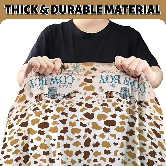 - 4-Pack Western Baby Shower Tablecloth Set: Each package includes 4 durable cowboy-themed tablecloths - perfect for covering banquet tables or creating coordinated western party zones!