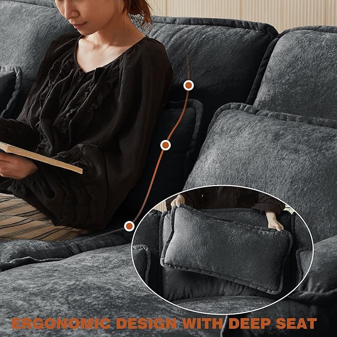 - Skin-Friendly Fabric: The chenille fabric is soft and skin-friendly, providing a soft and comfortable touch and adding a sophisticated and luxurious look to the comfy cloud couch. And each pillow of this cloud sofa is removable for easy cleaning.