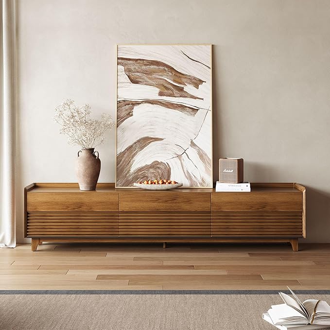 - Premium Natural Wood Grain: Our modern wood tv stand made of white wax wood grain veneer, smooth finishes and sturdy construction, not easy to deforme or cracke after a lont-term use