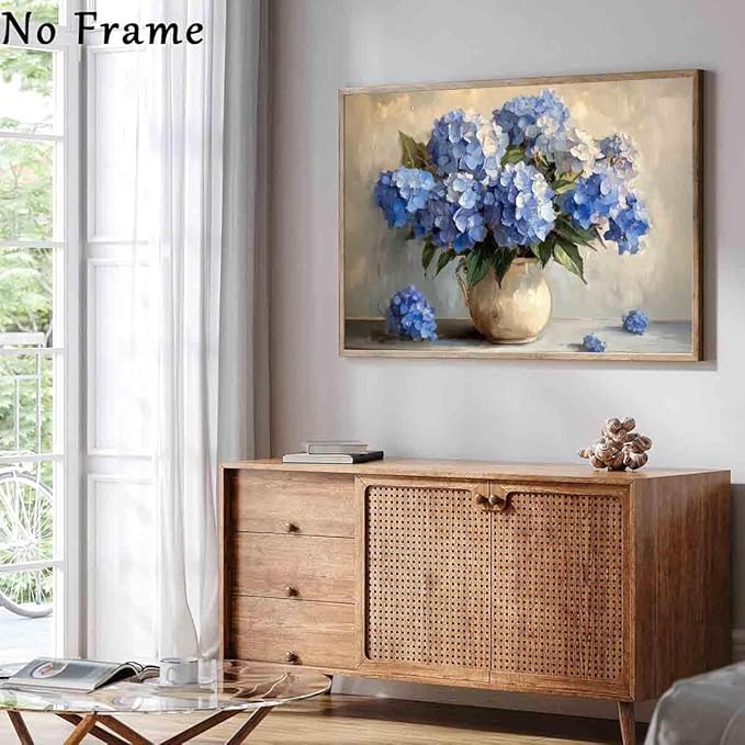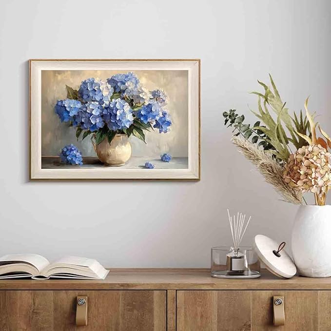 White And Blue Hydrangea Wall Art Hydrangea Flower Pictures Abstract Floral Paintings Elegant Floral Picture Rustic Farmhouse Wall Art Vintage Flowers Painting Living Room Decor 16x24inch No Frame