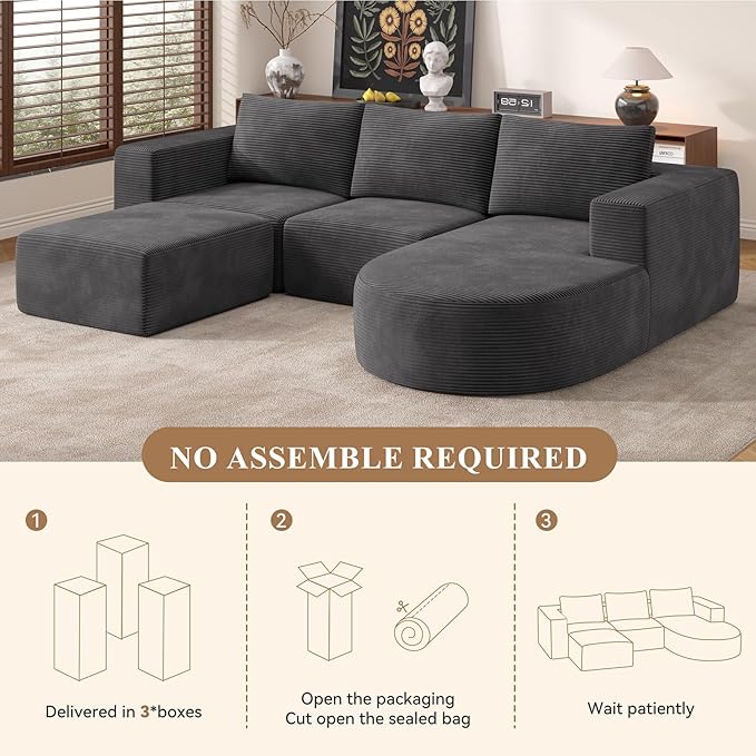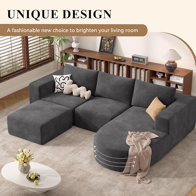 Modular Sectional Sofa with L-Shape Chaise,Cloud Sectional Modern Sleeper Couch with Deep Seat,Sponge Compression Sofas No Assembly Required (Dark Gray-Corduroy Fabric) 1pcs