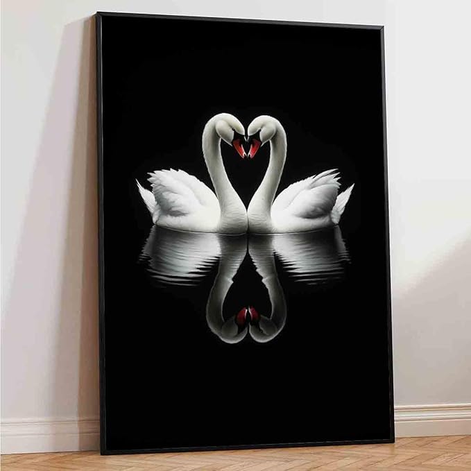Swan Wall Art Vintage Swan Lake Painting Black And White Animals Wall Art White Bird Pictures Moody Painting Aesthetic Print Romantic Elegant Animal Print Antique Artwork Room Decor 16x24inch No Frame