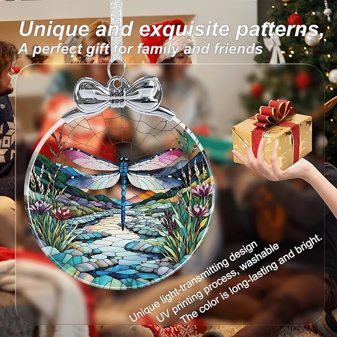 Dragonfly Stained Glass Christmas Ornament - Hanging Ornaments for Christmas Tree Decorations -Holiday Keepsake Present Exchange Idea