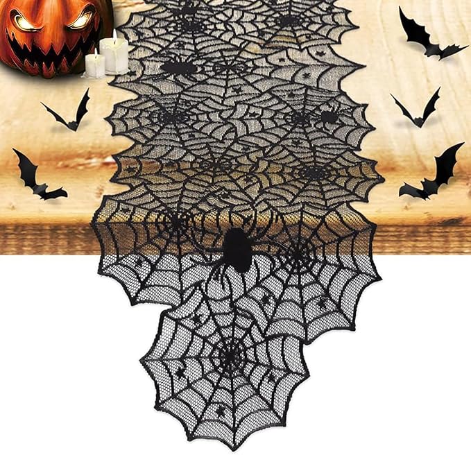 - Halloween Theme Decoration: This table runner features a classic spiderweb pattern design paired with eye-catching black, perfectly capturing the mysterious and fun atmosphere of Halloween and adding a festive touch to your dining table.