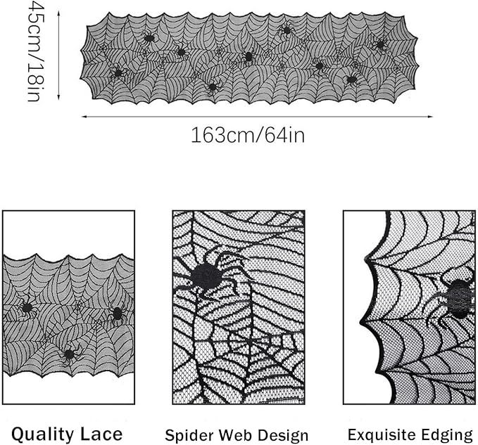 1-Pack Halloween Table Runner, Black Spider Web Lace Table Runner, Gothic Kitchen Decor, Fall-Themed Party Decorations, Spider Web Reusable Home Accent, 18 x 64 Inches