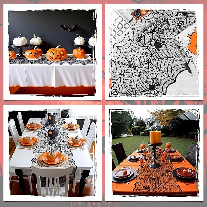 - Halloween Theme Decoration: This table runner features a classic spiderweb pattern design paired with eye-catching black, perfectly capturing the mysterious and fun atmosphere of Halloween and adding a festive touch to your dining table.
