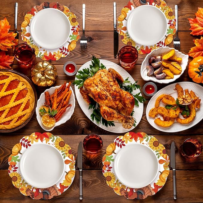 - Serves 50 Guests: Each pack includes 50 premium fall paper placemats ensure you have enough place mats to entertain all your guests, with pumpkin turkey pattern on them, perfect for your thansgiving party while keeping the party setup neat and stylish.
