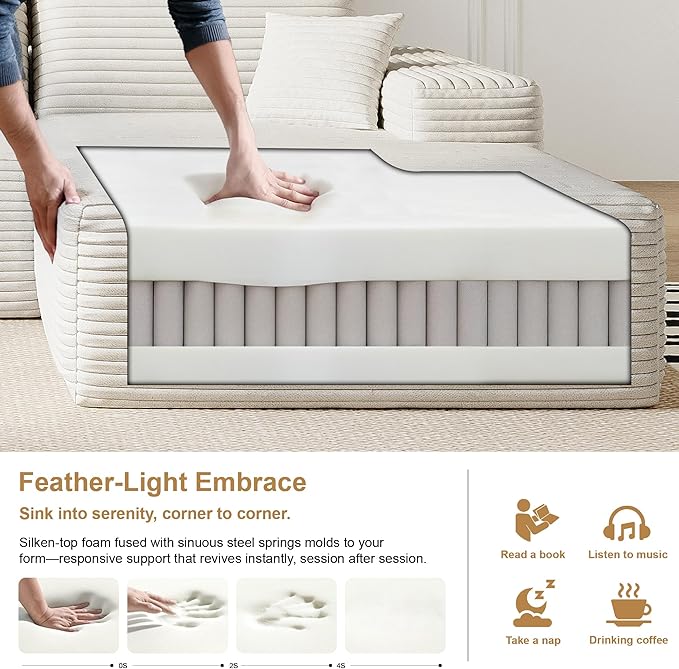 136" Sectional Couches for Living Room Modern Modular Sofa with L-Shape Couchs Upholstered Boneless Couch Deep Seat Sectional Couch with Chaise (White, Right Facing Chaise+3Seaters)