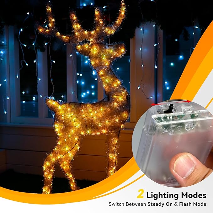 - Dual-Mode Fairy Lights: Easily switch between a steady warm glow and a flash mode using the "ON/OFF/FLASH" switch on the battery box. Steady On provides reliable illumination perfect for reading or elegant table decor. Flash creates instant romantic charm, ideal for parties, holiday gatherings, or magical outdoor nightscapes—effortlessly set your desired ambiance with just one click!