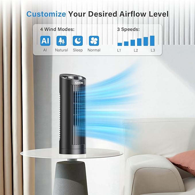 - 🧊【3 speeds & 4 modes Choose】: It comes with 3 adjustable speeds and 4 versatile modes to choose from, including AI, natural, sleep and normal modes, allowing you to customize the airflow to suit your preferences throughout the day.