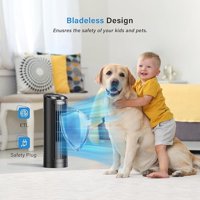 - 🥇【Bladeless Design & Safety Plug 】: Safety features like bladeless wind outlet and fine grille make it child-friendly and reliable. The power cable also has a safety plug with a fuse, automatically cutting off power in case of surges or electrical issues—providing peace of mind against accidental injuries.