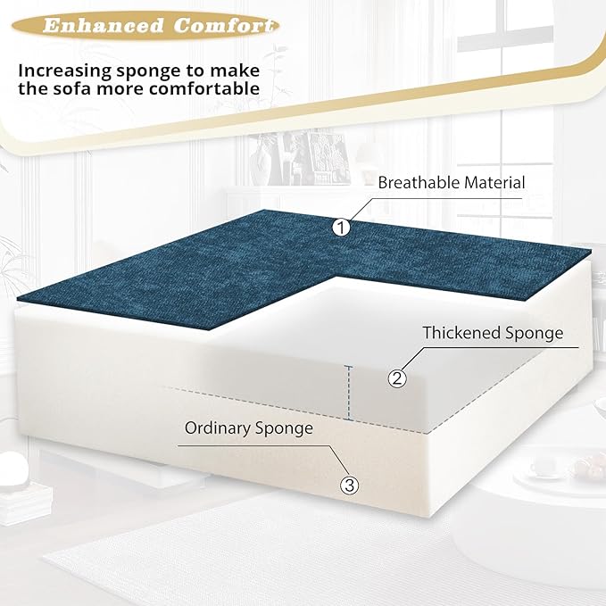 - EASILY ASSEMBLY: This L couch is easy to be assembled by 2 persons, following the instructions step by step. Overall size: 84”(L) X 56”(D) X 35”(H)