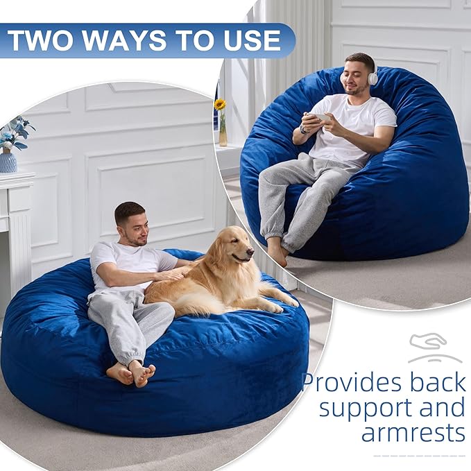 Hobestluk 6FT Bean Bag Chair Bean Bag Chairs for Adults Giant Bean Chairs with Velvet Cover, Memory Foam BeanBag Chair Fluffy BeanBag Chairs for Living Room, Bedroom- Blue (70" x 70" x 15")