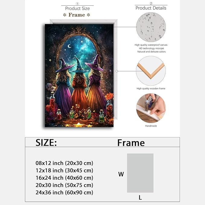 - 【Halloween Wall Art Dimensions】: The pictures are for effect display only, and multiple sizes are provided in the link. Before purchasing, it is recommended that you measure the size of the wall you need to hang, and then choose the canvas size according to your needs.