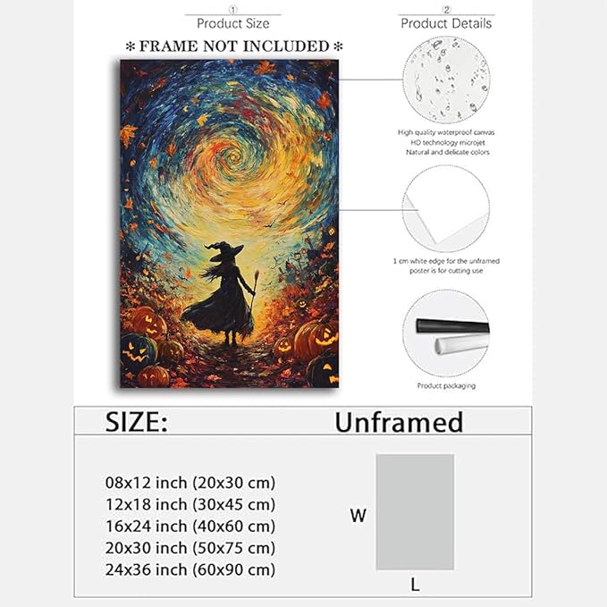 - 【Halloween Wall Art Dimensions】: The pictures are for effect display only, and multiple sizes are provided in the link. Before purchasing, it is recommended that you measure the size of the wall you need to hang, and then choose the canvas size according to your needs.